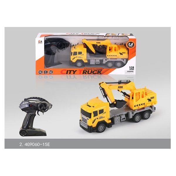 Semi Trailer Truck W / 360 ° Rotary Excavator Remote Control Toys 4 CH 1 : 32 Yellow
